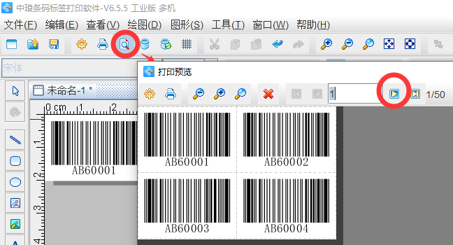 制作完成点击打印预览,通过翻页可查看批量生成的Code 93条形码。