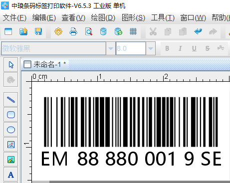 1)点击软件左侧工具栏中的“绘制一维码”工具在白色画布上添加一个条形码,双击条形码打开“图形属性-条码”界面,条码类型修改为“Swedish Postal Shipmentld”