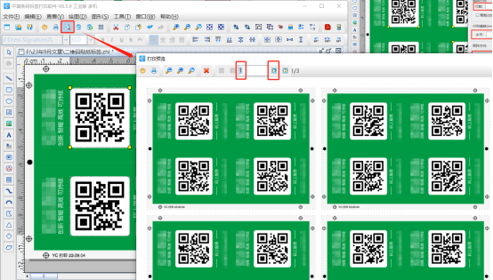 6. 设置完成之后,点击软件顶部的“打印预览”按钮,翻页查看批量制作的二维码,预览无误就可以输出PDF文档了,输出PDF文档的时候要注意根据自己的需要选择颜色模式(RGB或者是CMYK颜色模式)。